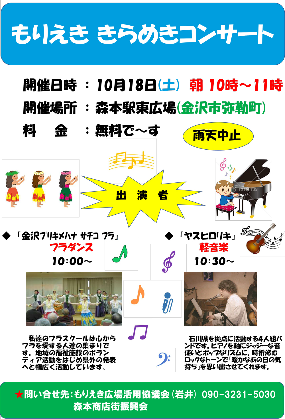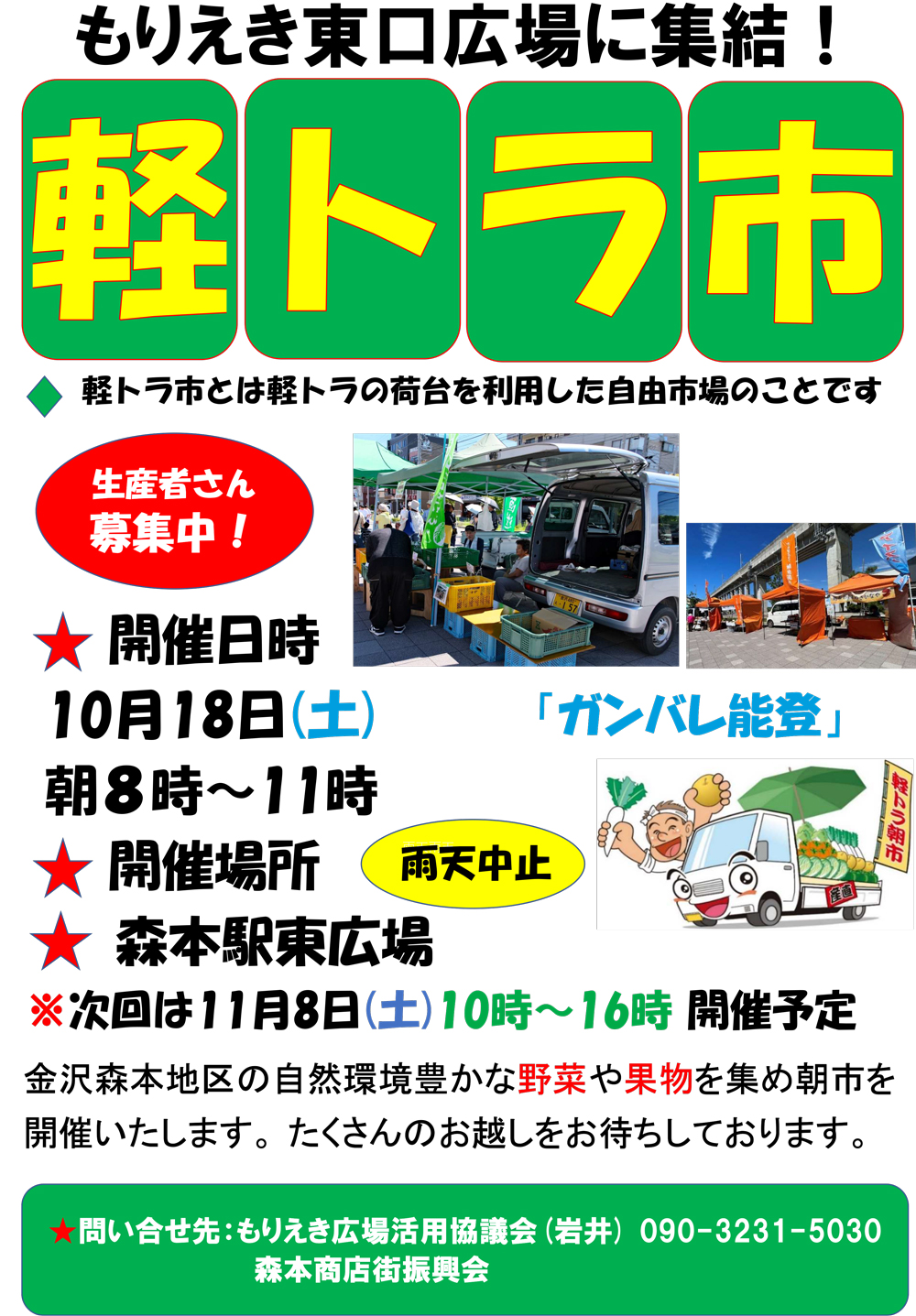 10/18(土)もりえき東広場で、軽トラ市&きらめきコンサート開催します(雨天中止)