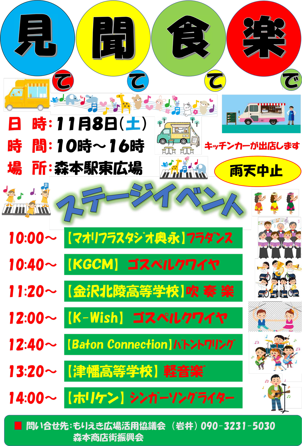 11/8(土)見聞食楽イベント 10:00~16:00(学校祭+コンサート)雨天中止!